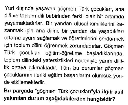 A | Çocuklar, ana dillerini unutma noktasına gelmektedirler. |