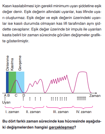 Grafikte belirtilen dört zaman sürecinde kas hücrelerinde laktik asit fermantasyonu yapılmış olabilir.